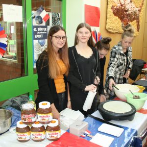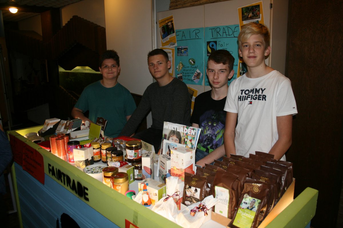 Daneben gab es Stände des Projektkurses „Indeland“ aus der Q1, des „Fair Trade“-Projektes, der Schülervertretung und Beratungsangebote für die Sekundarstufe I. Auch die aktuellen Fotojahrbücher 2019 wurden dort präsentiert und verkauft. Am Stand „Schüler für Schüler“ informierte man über die Sporthelfer-AG, den Schulsanitätsdienst, die Schülerlotsen, die Klassenpaten und die Bistrohelfer. Im Berufsorientierungsbüro (BOB) fanden Berufsberatungen statt, während davor, am Stand der Sparkasse, einem der zahlreichen „Kurspartner“ der Europaschule, Informationen zum bargeldlosen Bezahlverfahren in der Mensa gegeben wurden.