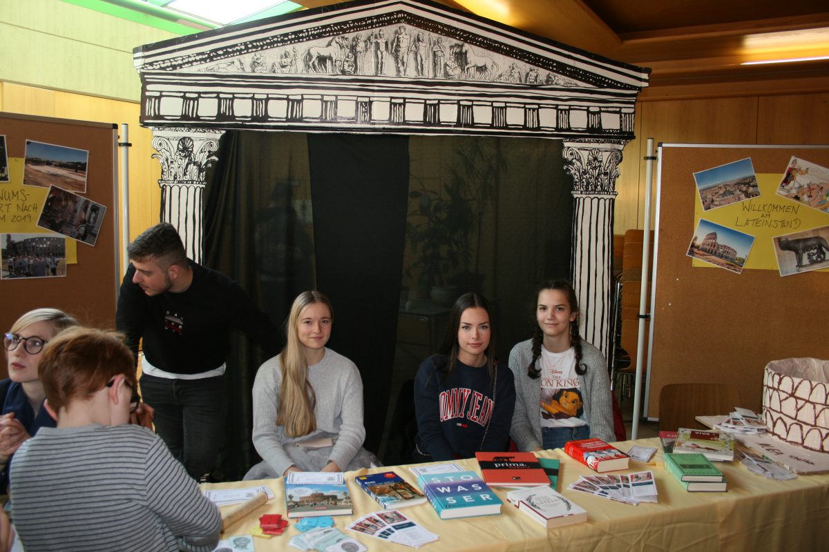 Im Forum waren die Fremdsprachen mit ihren Info-Ständen vertreten: neben Englisch, Französisch, Spanisch und Latein wurden dort auch die zahlreichen Erasmus-Plus-Projekte vorgestellt und über den internationalen Schüleraustausch informiert. Auch das Fach Mathematik war mit einem eigenen Stand vertreten. Im Durchgang zum Gebäude II gab es eine Ausstellung der Klassenfotos aus dem diesjährigen Jahrbuch und eine Präsentation des Schulgartens.
