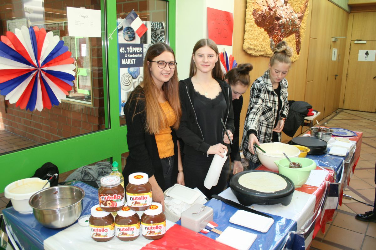 Der Betreiber der Schulmensa, die Firma „Europa Catering Reinart“, hatte für ein reichhaltiges Angebot an leckeren Speisen und Getränken gesorgt, das die Besucher gerne in Anspruch nahmen. Für den süßen Nachtisch sorgte der Jahrgang 10 mit einer großen Kaffee- und Kuchentheke, während der Jahrgang Q2 Crêpes und alkoholfreie Cocktails zauberte. Wem der Weg in die Mensa durch die Menschenmassen zu lang war, der bekam Kaffee und Kuchen auch im „Künstler-Café“ der Q2, neben Fair-Trade-Produkten wie fairgehandelte Schokolade, Schokoriegel oder Kaffee. Im Bistro wurden ebenfalls Getränke und Waffeln serviert.