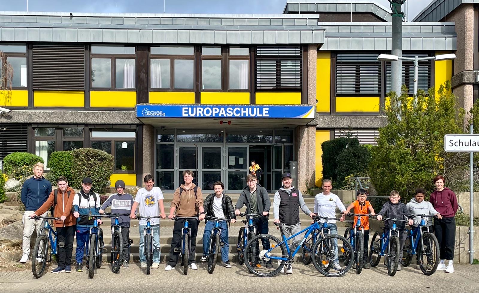 Am Donnerstag, den 21.3.2024 bekam die Europaschule weitere sechs Mountainbikes in drei verschiedenen Größen. Die Räder tragen alle das Schullogo. Sie sollen in Zukunft sowohl in der Fahrrad-AG als auch bei Wanderfahrten mit Schulklassen genutzt werden.