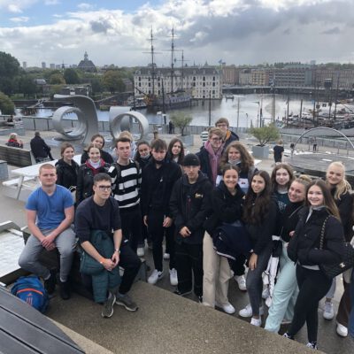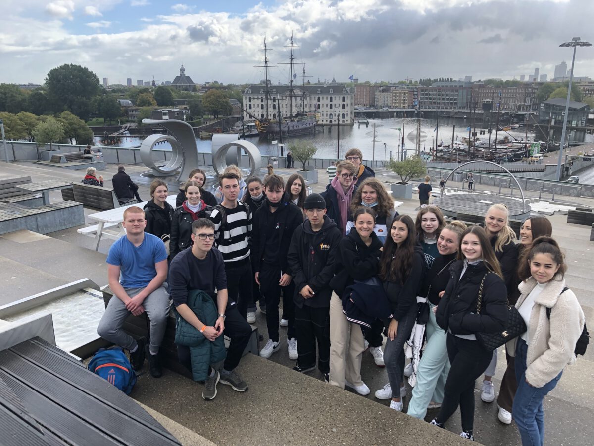 Die erste Auslandsfahrt der Europaschule Langerwehe nach der langen Corona-Pause durfte der Leistungskurs Englisch des Jahrgangs 13 durchführen – wenn auch nicht so, wie ursprünglich geplant. Zu groß war die Sorge, man würde am Ende pandemiebedingt doch nicht reisen können. So ersetzte man den Erstwunsch „Dublin“ schon bald durch den Zweitwunsch „London“ in der Hoffnung, dass Zug- statt Flugreise eher zum Ziel führen würde. Als dann jedoch die in London aufkommende Delta- Variante die gemeinsame Abschlussfahrt wieder zu verhindern schien, entschlossen sich die 24 Schülerinnen und Schüler des Abiturjahrgangs und ihre begleitenden Lehrerinnen erneut umzubuchen und ein Ziel zu nehmen, dass zwar im Ausland lag – und somit Englisch als Vehikelsprache erforderte – jedoch vom Abreiseort nicht zu weit entfernt lang: Die Wahl fiel auf Amsterdam.