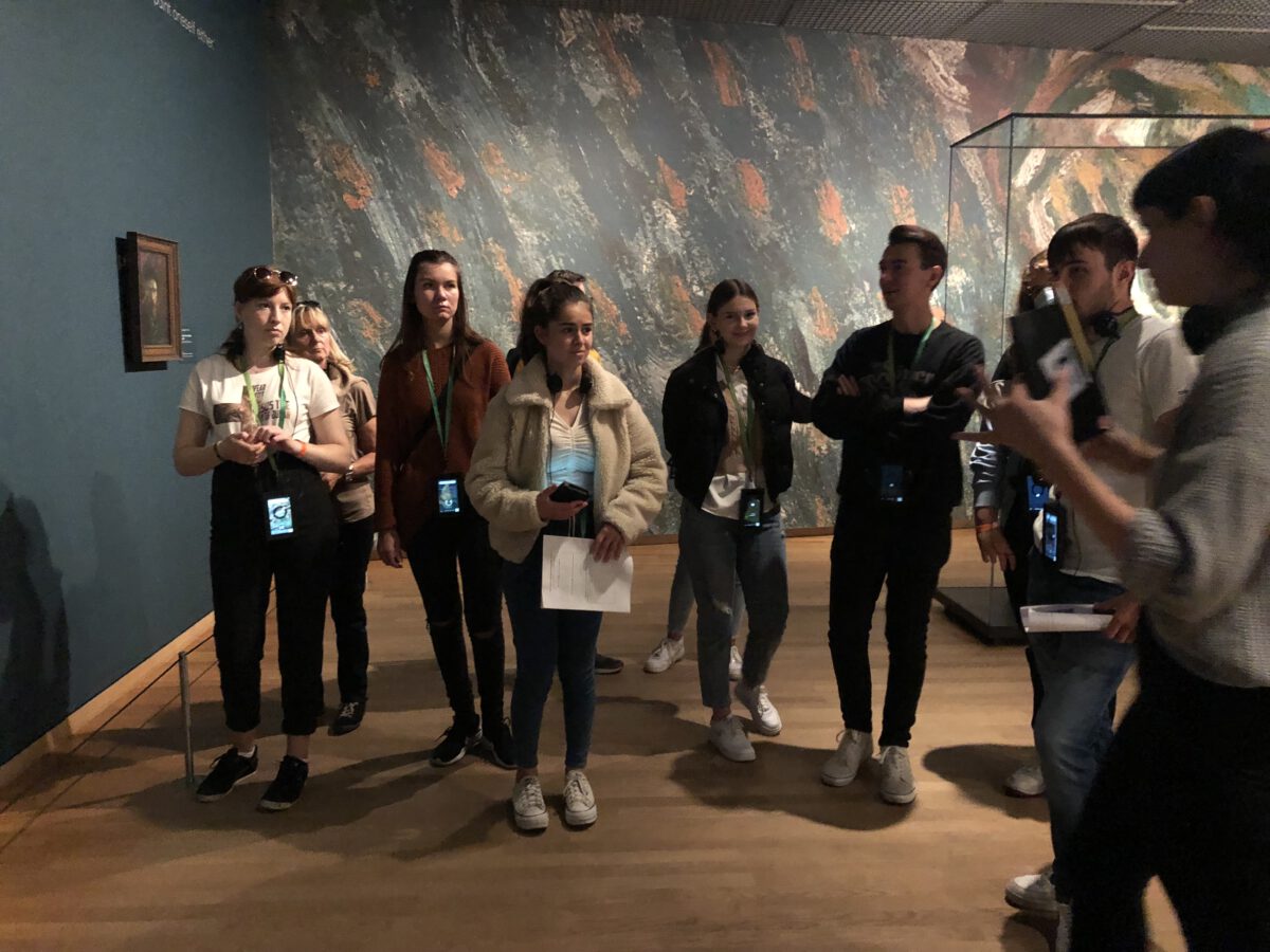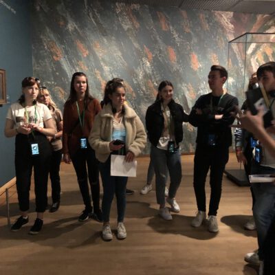 Und diese Wahl bereute die Gruppe am Ende nicht, denn es gelang die fünf Tage der Projektwoche so zu gestalten, wie es eines Englisch Leistungskurses würdig ist: Alle Führungen, z.B. die im VanGogh- und Rijksmuseum, im Anna-Frank-Haus und auch die durch die Stadt, fanden in englischer Sprache statt. Des Weiteren nahmen die Langerweher Schülerinnen und Schüler an einem Theater- Workshop statt, bei dem das aktuelle Kursthema Shakespeares Romeo & Julia aufgegriffen wurde. Das Hard Rock Café stand auf dem Programm, ein Abendessen „beim Inder“ und auch ein Drink im Irish Pub, wie man es in London bzw. Dublin ebenso erlebt hätte. Doch landestypische Elemente durften natürlich auch nicht fehlen. Im Rahmen einer Food-Tour kosteten die Reisenden typisch niederländische Snacks, z.B. frittierten und rohen Fisch, die bekannten Stroopwaffeln, surinamesische Wraps und vieles mehr.