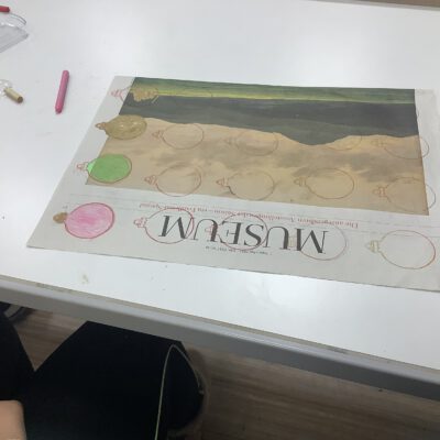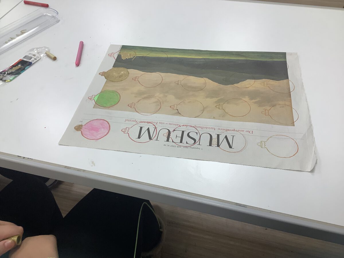 In einer Pausenaktion konnte an den Kunstwerken gebastelt werden und die Schüler*innen konnten sich Geschenkpapier aus Zeitung gestalten.