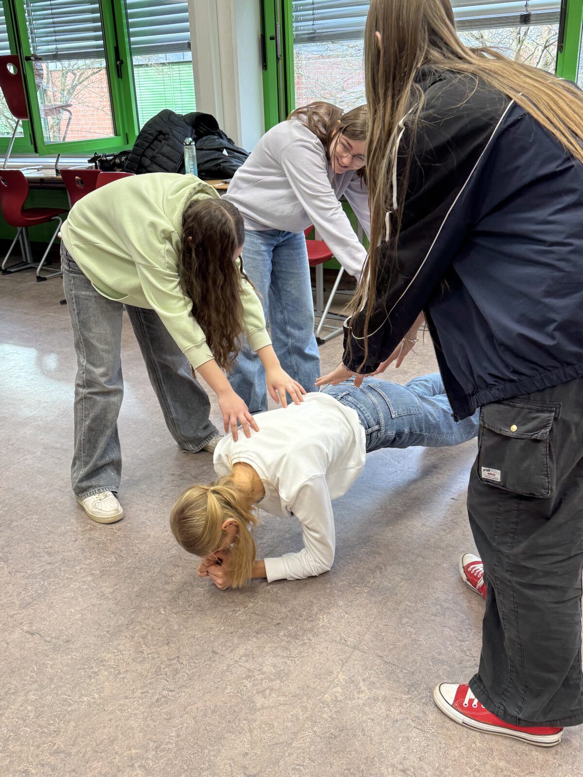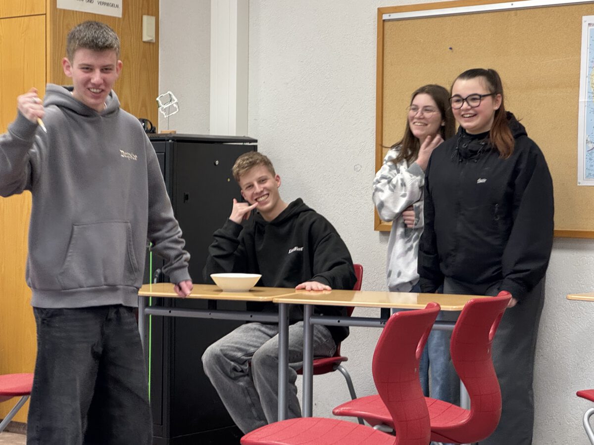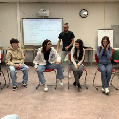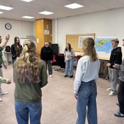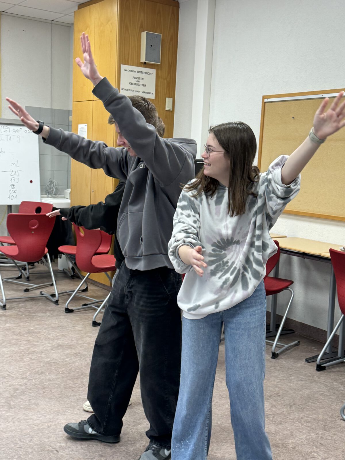 Trotz mehrjährigen Sprachenlernens ist die Hürde hoch, auf Französisch zu sprechen oder gar zu improvisieren. Dass dies aber durchaus gelingen kann und sogar Spaß macht, erfuhren die Französisch Lernenden der Jahrgänge 10 und 11 der Europaschule Langerwehe im Rahmen eines Theaterworkshop mit Vincent Simon. Der gebürtige Bretone und Wahlberliner weiß, wie er Schülerinnen und Schüler dazu bringt, in einem spielerischen Rahmen ihre Hemmschwellen zu überwinden und dabei ihre Sprachkenntnisse in einer Vielzahl verschiedener szenischer Spiel- und Darstellungsformen anzuwenden. In Kleingruppen stellten die Nachwuchsschauspieler- und schauspielerinnen Gefühle in unterschiedlicher Intensität dar, entwickelten kleine Sketche nach Vorgaben und lernten nebenher viele neue französische Wörter und Formulierungen. Alle waren sich am Ende einig: «C’était bien!» und «Vincent, vous êtes trop cool!»
