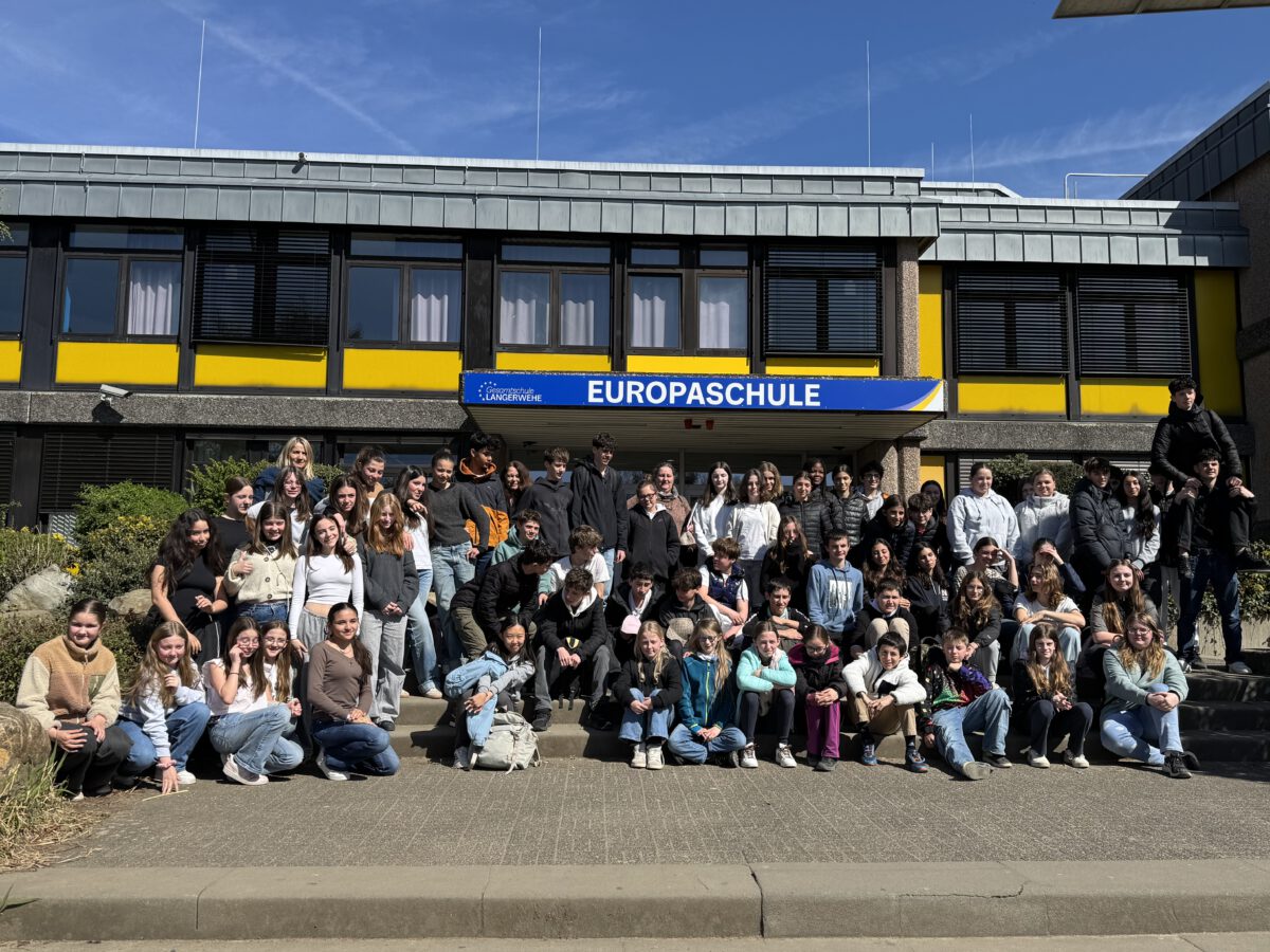 Endlich konnten wir wieder SchĂŒlerInnen und Lehrerinnen von unserer Partnerschule in der NĂ€he von Montpellier in SĂŒdfrankeich, mit der uns eine mehr als eine 20jĂ€hrige Freundschaft verbindet, in Langerwehe willkommen heiĂen. 41 französische Jugendliche vom CollĂšge Pic Saint Loup stiegen Donnerstagmittag nach langer Anreise mĂŒde aus ihrem Reisebus, um von ihren Gastgebern und Gastgeberinnen aus den JahrgĂ€ngen 5 bis 9 in Empfang genommen zu werden. Einige begrĂŒĂten sich als alte Freunde vom letzten und vielleicht sogar vorletzten Austausch, andere mussten erstmal miteinander âwarm werdenâ. Dabei half beiden Seiten das spannende Programm, das die Langerweher fĂŒr ihre GĂ€ste vorbereitet hatten: Workshops im Neaderthalmuseum zu verschiedenen Aspekten der Steinzeit, ein Besuch in Aachen und des DreilĂ€nderecks und ein intensiver Schultag mit Hospitationen, Backkurs und Pausenkonzert veranstaltet durch die Schulband standen auf der Agenda. Am Wochenende hatten die Familien Gelegenheit, mit ihrem Gast die Gegend zu erkunden und die deutsch-französische Freundschaft âmit Leben zu fĂŒllenâ.