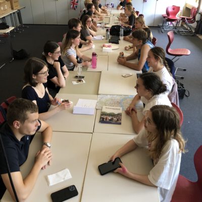 Kaum hatte das Schuljahr begonnen, schon kündigten sich die ersten internationalen Gäste an: Zwei Wochen lang betreuten 12 Langerweher Schülerinnen und Schüler der Jahrgänge 6-13 jeweils einen Gast aus Großbritannien. Schon zum fünften Male nahm die Europaschule Langerwehe in diesem Sommer am Programm Deutschland Plus (https://www.kmk-pad.org/programme/deutschland-plus.html) des Auswärtigen Amtes teil und empfing nach Jugendlichen aus Ägypten, Norwegen, Griechenland und Kroatien nun die Briten, auf die man besonders gespannt war. Denn Kontakt zu britischen Schulen zu knüpfen war immer schwer (Wer lernt schon Deutsch in einem Land, dessen Sprache die Weltsprache geworden ist?) und ist durch den Brexit nicht unbedingt leichter geworden. So staunten die Gastgeber nicht schlecht über die doch sehr guten Sprachkenntnisse der angereisten Briten, die diese während der anstehenden zwei Wochen noch ausbauen wollten.