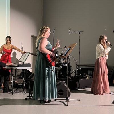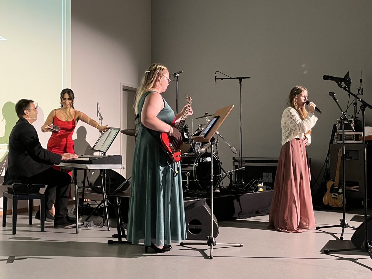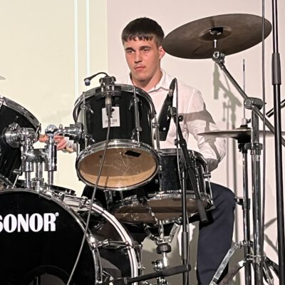Musikalisch begleitet wurde die Feier durch die Schülerband unter Leitung der Musiklehrer Florian Bitter und Hans-Jürgen Geffers. An den Instrumenten spielten Lana Sänger, Jennifer Müller, Maxim Röser und Tim Blaß, während die Sängerinnen Sandy Goffart und Lucy Witzel einfühlsam den Songs ihre Stimmen verliehen.