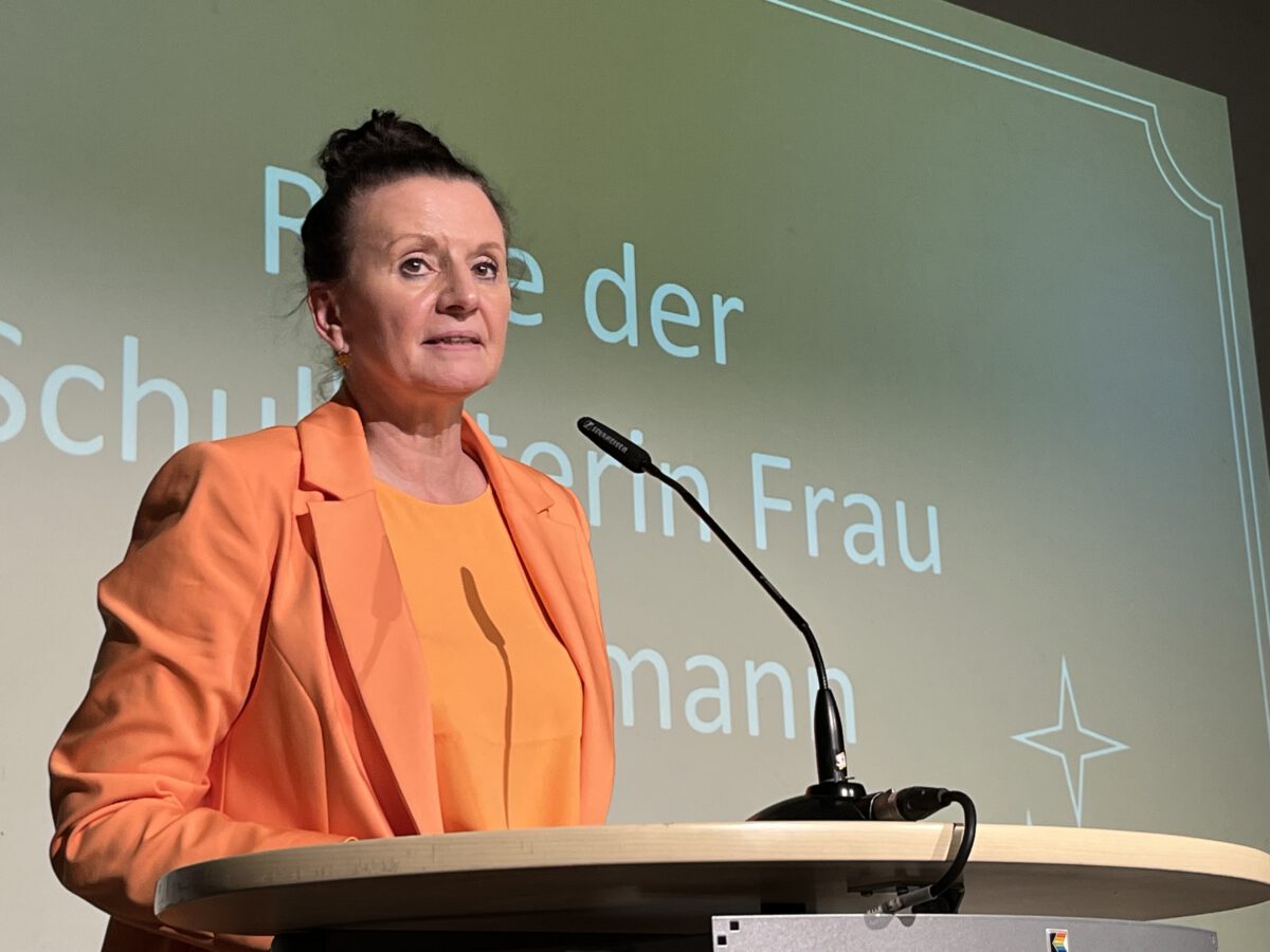 Schulleiterin Regina Westermann verwies in ihrer Begrüßungsrede auf die Wahl des diesjährigen Mottos „AbiBull – Abitur verleiht Flügel“: Bildung verleihe Flügel im wahrsten Sinne. „Bildung hebt euch heraus aus den engen Grenzen dessen, was wir zu wissen glauben. Sie eröffnet euch neue Horizonte. Sie befähigt euch, kritisch zu denken, Probleme zu lösen und Verantwortung zu übernehmen“.