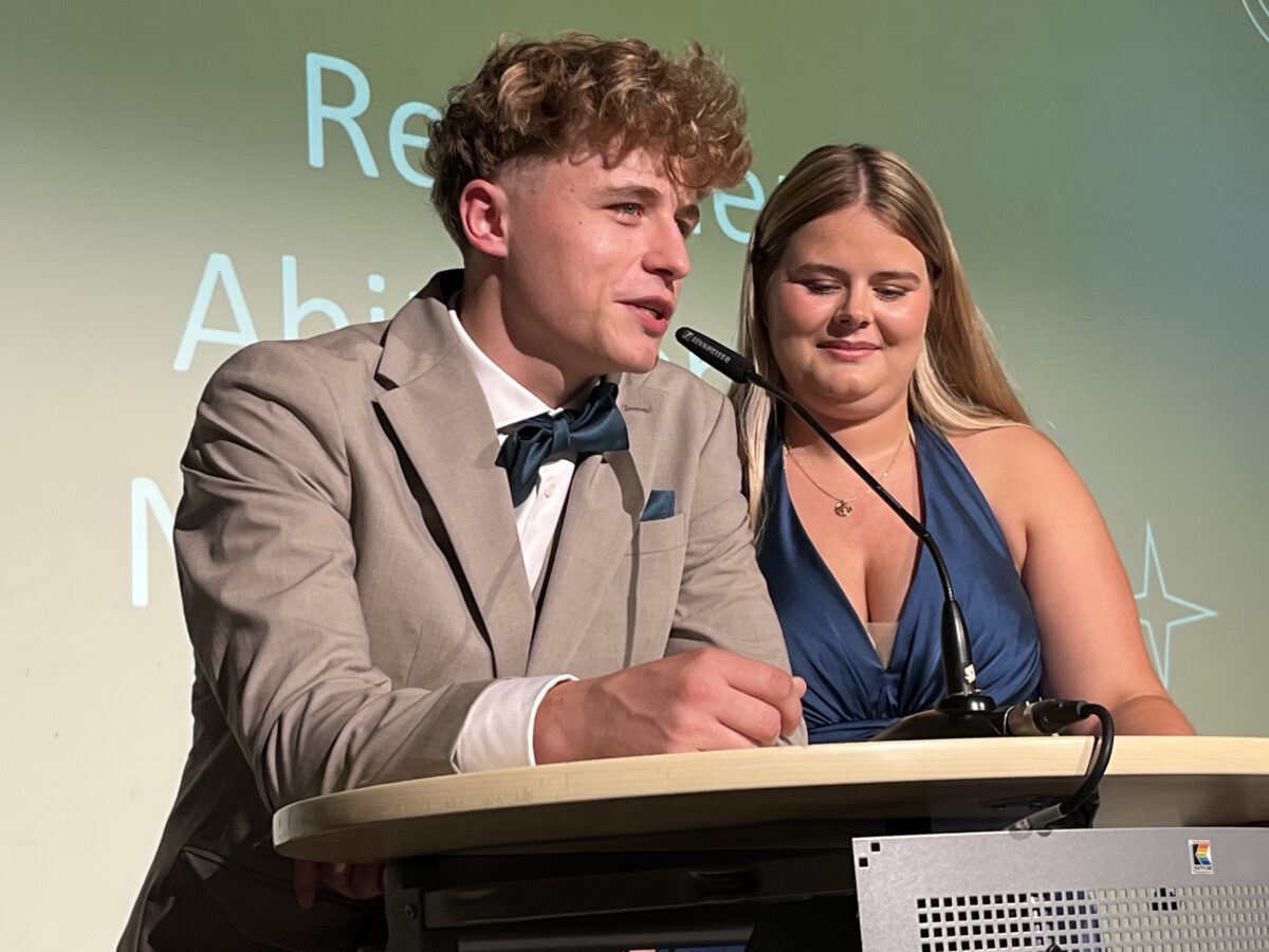Nachdem die Moderatorinnen Emilia Stockem und Carolina Alves Lé die SchülerInnen, Eltern und Ehrengäste begrüßt und Abteilungsleiterin und Oberstufenkoordinatorin Mandy Schmitz die Gäste ebenfalls herzlich willkommen geheißen hatte, verdeutlichte Bürgermeister Peter Münstermann in seiner kurzen Ansprache, dass das den SchülerInnen heute überreichte Abiturzeugnis nicht nur einen hochqualifizierten Abschluss, sondern auch ein Symbol für ihre harte Arbeit, ihren Fleiß und ihre Entschlossenheit darstelle.