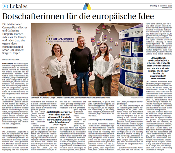 Lesen Sie hier einen aktuellen Pressebericht über unsere Europabotschafterinnen.