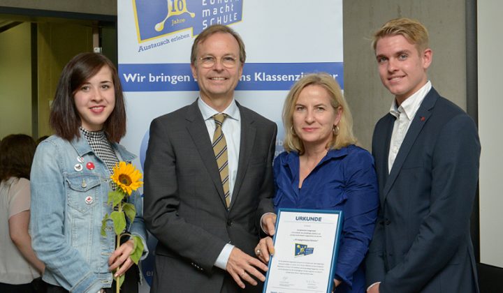 Im Rahmen einer Feierstunde im Forum der Europaschule Langerwehe wurde die Gesamtschule für zwei herausragende Ereignisse geehrt: Im September war sie als Teilnehmerin des Programms „Europa macht Schule“ des Deutschen . . .