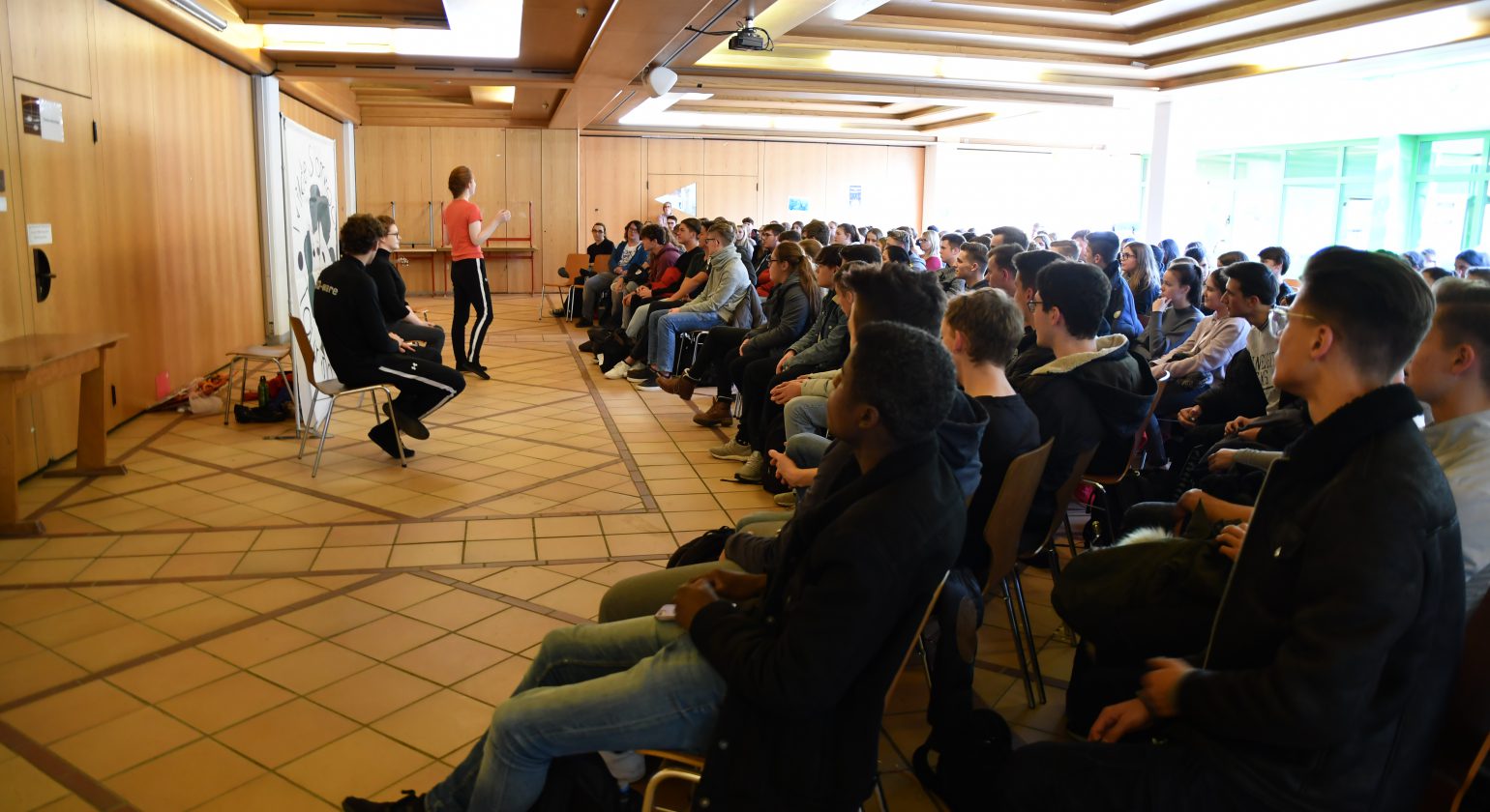In diesem Jahr waren die vier Iren an der Europaschule Langerwehe mit ihrem neuen Stück SQ-Ware zu Gast, einer Satire über den großen Einfluss von Sozialen Medien auf – vor allem – Jugendliche.