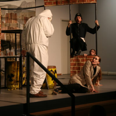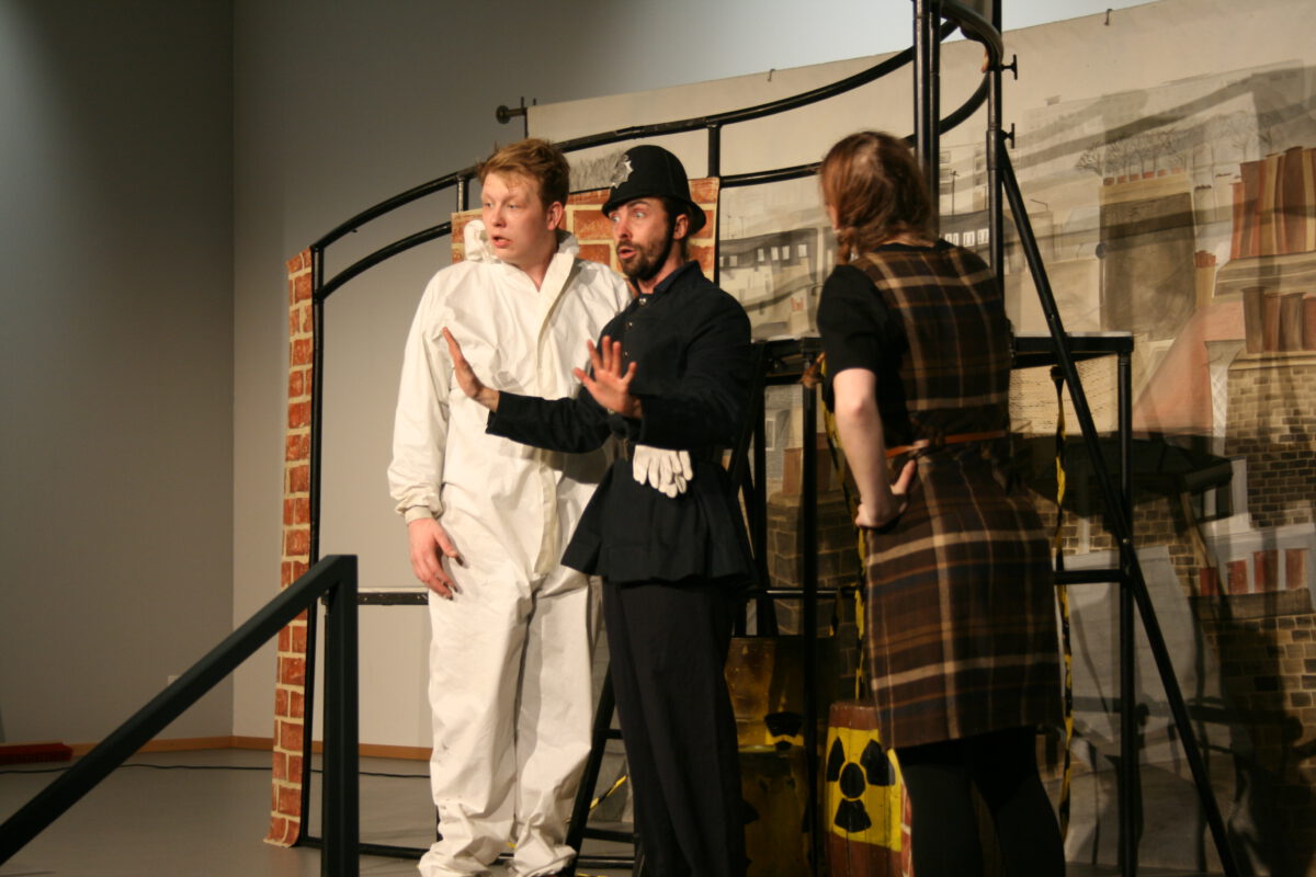 Bei „BDS and the Faceless Ghost“ geht es um Billy, Deidre und den Hund Snuffles, die die Detektivagentur „BDS“ betreiben. Sie besuchen eine alte Dame, deren Haustiere auf mysteriöse Weise gestorben sind. Wer hat die unschuldigen Tierchen auf dem Gewissen? Die drei Jungdetektive stürzen sich in das aufregende Krimiabenteuer. Nur der Hund Snuffles erkennt, dass sich hinter dem hohen Zaun des Nachbarn ein Lagerplatz für gebrauchten Nuklearbrennstoff befindet. Das Stück brachte die Problematik der Kernkraft auf humorvolle Weise auf die Bühne und regte zur anschließenden unterrichtlichen Diskussion an.