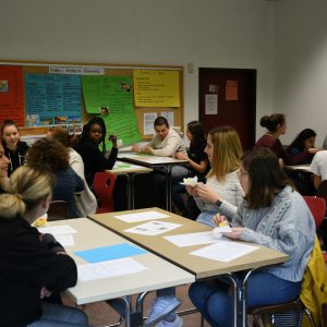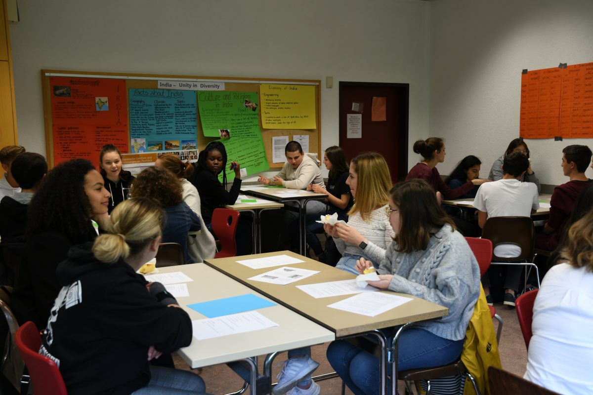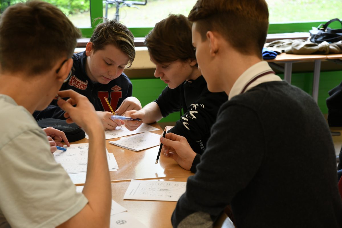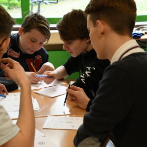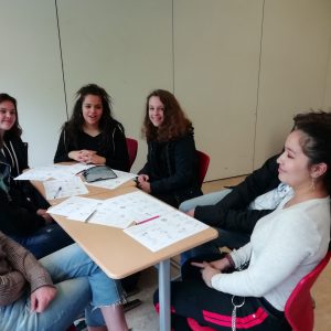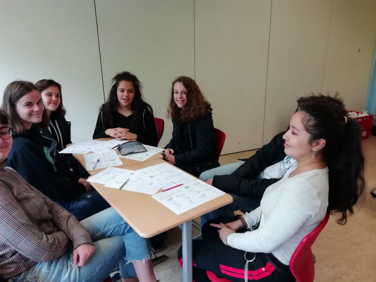 In diesem Zusammenhang und unter diesen Vorzeichen fand das diesjährige Treffen zwischen den Schüler- und Lehrergruppen der beiden Schulen in Langerwehe statt. Am Morgen wurden die Gäste direkt vor der Schule in Empfang genommen und nach einem gemeinsamen Gruppenfoto ging es dann auch direkt in gemischten Gruppen an die Arbeit. Zahlreiche Sprachaktivitäten wurden durchgeführt, mal mehr oder weniger spielerisch – je nach Lernniveau. Spaß und Interesse waren jedoch in allen Gruppen vorhanden, denn immer funktioniert diese einfache Formel: Man kombiniere Jugendliche ähnlichen Alters unterschiedlicher Herkunft zusammen, biete ihnen einen Sprechanlass und alles weitere geht von alleine. So auch dieses Mal.