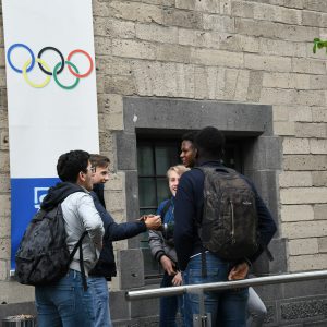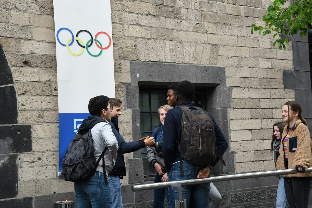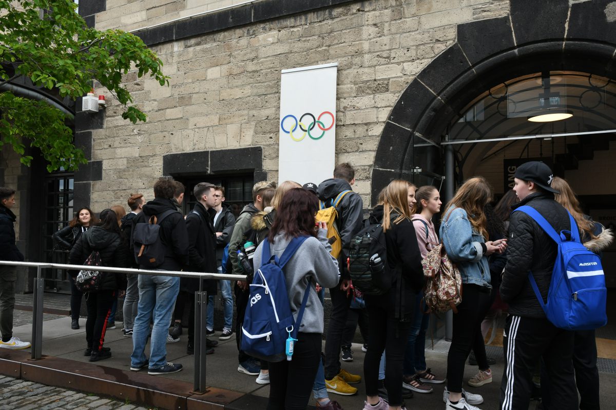 Während man in den Vorjahren den Projekttag in Langerwehe fast ausschließlich an der Schule verbracht hatte, konnte man in diesem Jahr der Gruppe – aufgrund der größeren finanziellen Flexibilität – ein etwas attraktiveres Programm bieten, um auch den Aspekt der Landeskunde ein wenig mehr in den Fokus zu bringen. So verbrachte man den zweiten Teil des Projekttages zusammen in Köln, wo die eine Hälfte der deutsch-belgischen Schülergruppe das EL-DE-Haus besuchte und die andere durch das Sportmuseum geführt wurde, wo natürlich zahlreiche „Eigenversuche“ unternommen werden konnten. In der sich anschließenden Freizeit konnten Gäste und Gastgeber in kleinen Gruppen nochmals auf eigene Faust die Stadt erkunden.