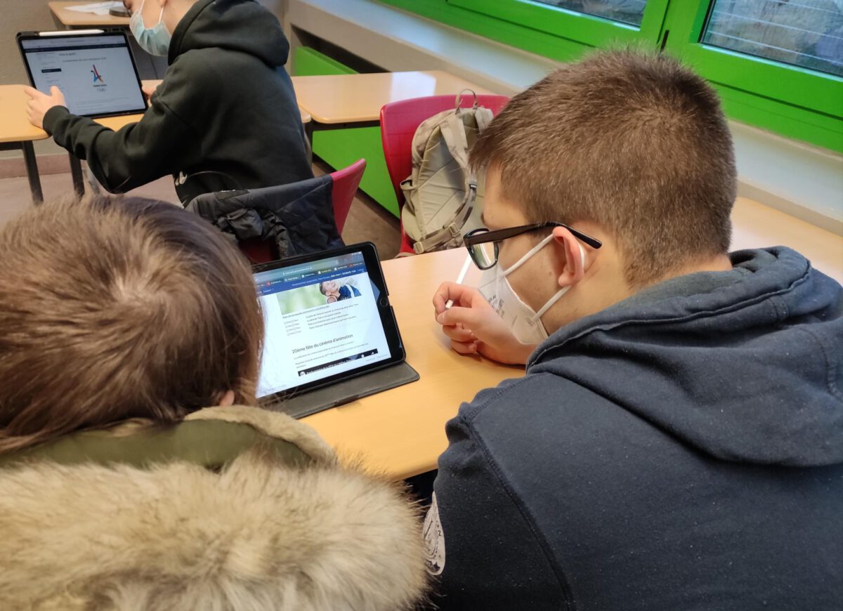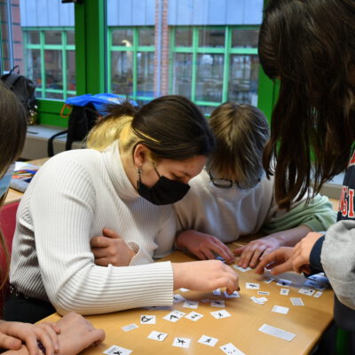 Zum einen nahm der Französischkurs der EF von Frau Korsten mit tatkräftiger Unterstützung von vier Schülerinnen aus dem WPI-Kurs des Jahrgangs 10 am Internet-Team-Wettbewerb langue et cultures teil. Die Schülerinnen und Schüler konnten in zehn Bereichen rund um Frankreich, Frankophonie und Europa ihr Wissen vertiefen und überprüfen. Sie hörten authentische Radiosendungen und lasen sich in verschiedene kulturelle, aber auch gesellschaftliche Themen ein. In einem Video über europäische Musiker lernten sie beispielsweise den Rapper Albi X kennen, der Musik auf Französisch, Deutsch und Lingala produziert. Der Wettbewerb bot auch einige sprachliche Herausforderungen, so mussten die Schülerinnen und Schüler lange überlegen, was die Redewendung avoir la banane wohl bedeuten könnte. Sie sahen die Trailer von 100 Kilos d’étoiles, Fourmi oder Le Voyage du prince, die Teil des französischen Jugendfilmfestival Cinéfête 2021 des Institut français waren.