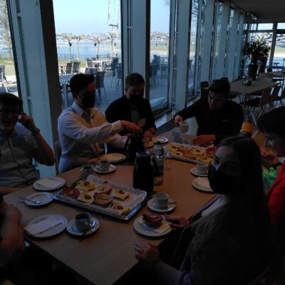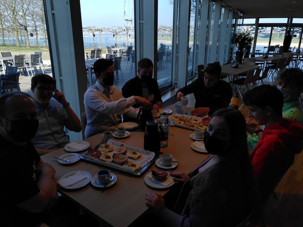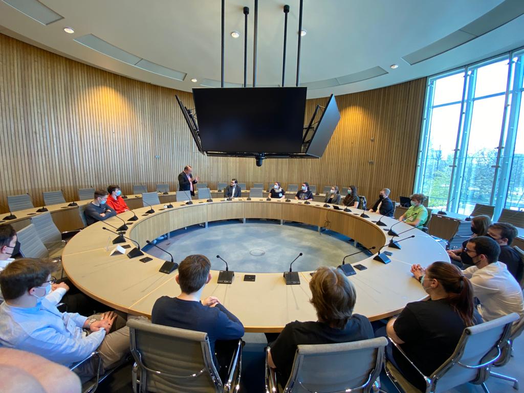 Nach der Sicherheitskontrolle und einem kleinen Frühstück in der Kantine des Landtags gab es eine informative und kurzweilige Einführung in die Arbeit des Parlamentes. Haben Sie zum Beispiel gewusst, dass an einem Sitzungstag 12 Stunden ohne Unterbrechung diskutiert und abgestimmt wird? Danach durften die Schülerinnen und Schüler auf der Zuschauertribüne platznehmen und einer Stunde der Debatte zu den Straßenbauabgaben von Hauseigentümern folgen. Lucas Hall (Q2) sagt dazu später: „Auch das Zuschauen bei der Plenarsitzung war sehr interessant, da man von den Tribünen aus das ganze Geschehen gut beobachten konnte. So war man direkt bei den hitzigen Diskussionen dabei, die bis zu einer namentlichen Abstimmung gingen.“