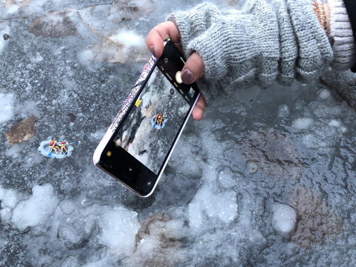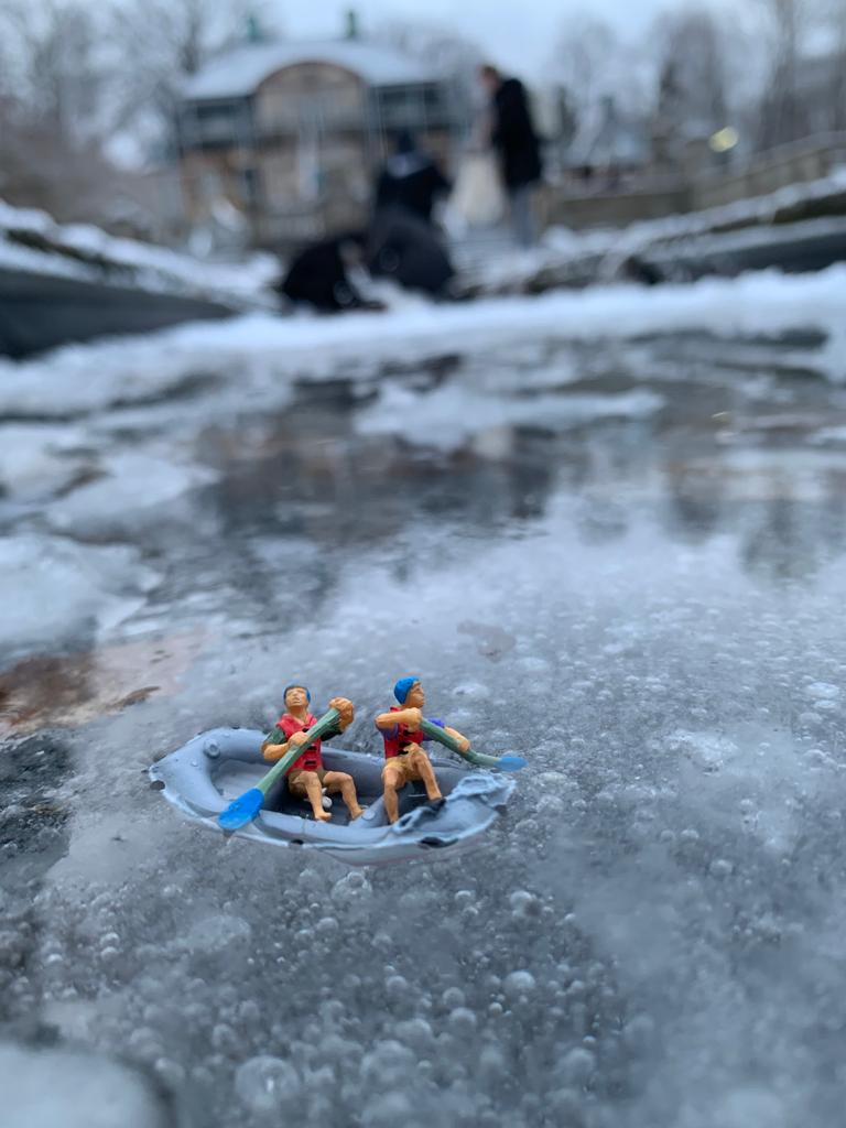 Was macht die Frau im Bikini im tiefsten schwedischen Winter? Und was macht das Wildschwein im ausrangierten Weihnachtsbaum? Die 14 Schülerinnen und Schüler des Jahrgang 10, die 5 Tage im winterlichen Stockholm verbracht haben, können diese Fragen leicht beantworten: ‚Little-People-Fotografie‘ nennt sich die Technik des britischen Künstlers Slinkachu, die sie zusammen mit ihren schwedischen Austauschpartnern als Thema für die Erasmus+-Begegnung gewählt hatten. So paddelten zwei Kanuten vor dem königlichen Schloss um ihr Leben und Bauarbeiter karren den Zuckerguss für das schwedische Nationalgericht Kanelbulla heran. Diese zu backen erlernten die Schüler und Schülerinnen im Zimtwecken-Kurs, bei dem auch selbst gemachtes Knäckebrot auf dem Programm stand.