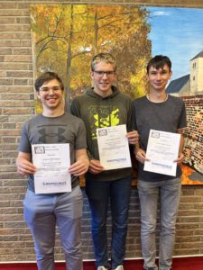 Auch diesmal durften sich alle Teilnehmenden über Urkunden für ihre tollen Leistungen freuen, die sie im neuen Schuljahr am 23.8. überreicht bekamen. Ganz besonders hervorzuheben sind unsere Leistungskurs-Mathematiker Philipp Schuller, Luca Theis und Michael Malczok aus der Q2, die schulübergreifend – mit viel Durchhaltevermögen – eines der besten 3 Ergebnisse aller teilnehmenden Oberstufen-Schülerinnen und -Schüler erzielt haben!
