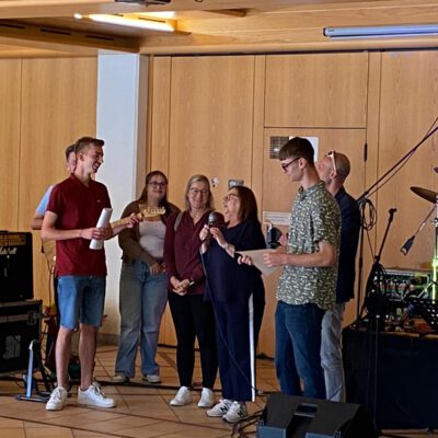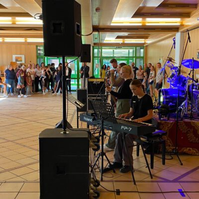 Neben verschiedenen Spielestationen gab es ein kleines Bühnenprogramm mit Musik, in dessen Rahmen auch die Schülerehrungen stattfanden, viele verschiedene Informationsstände und natürlich auch eine Cafeteria mit leckerem Kaffee und Kuchen.