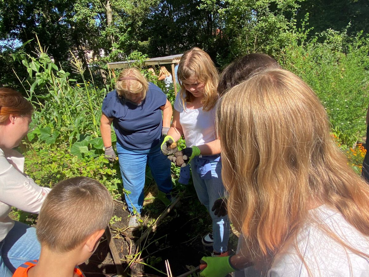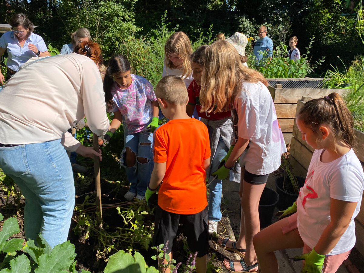 Die Schülerinnen und Schüler der Garten-AG zeigten stolz ihre Gemüsebeete, in denen sie u.a. Möhren und Kohl angebaut hatten. Sie arbeiten mit der sog. „GemüseAckerdemie“ zusammen und haben bereits zwei aufregende Pflanzworkshops erlebt. Diese Workshops sind mehr als nur praktische Übungen – sie sind eine Reise in die faszinierende Welt der Pflanzen und eine Gelegenheit für die Kinder, ihre eigenen Hände in die Erde zu tauchen und eine Verbindung zur Natur herzustellen. In diesen Workshops lernen sie nicht nur, wie man Samen und Stecklinge pflanzt und Pflege gibt, sondern auch die Wichtigkeit von Geduld, Ausdauer und Teamarbeit. Durch „Krautfunding“ soll das Grüne Klassenzimmer weiter ausgebaut werden. Die VR-Bank möchte mithelfen und verdoppelt jede Spende unter EUR 500: