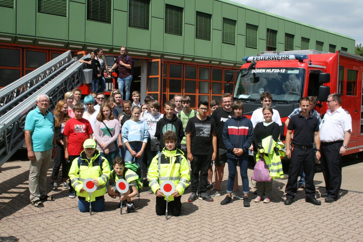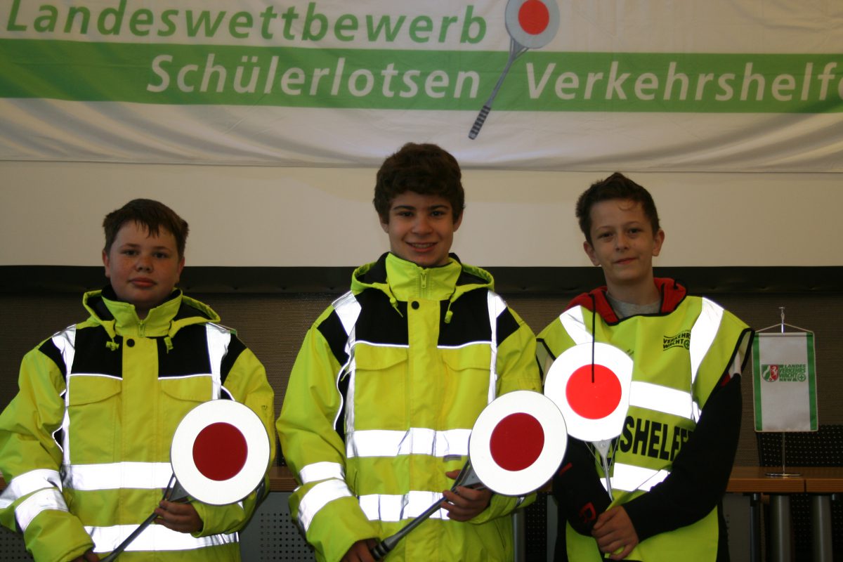 Mit dem Ziel den oder die besten Verkehrshelfer und Verkehrshelferinnen in Nordrhein-Westfalen zu finden, hatte die Landesverkehrswacht NRW im Juli zum Schülerlotsenwettbewerb auf Landesebene eingeladen. 40 Jugendliche mit ihren Betreuern, darunter drei Schülerlotsen der Europaschule Langerwehe, machten sich auf den Weg nach Düren, wo Sie von Verkehrsminister Hendrik Wüst, dem Schirmherrn der Veranstaltung, begrüßt wurden: „Hilfsbereitschaft und gegenseitige Rücksichtnahme im Straßenverkehr lassen oft zu wünschen übrig. Ganz anders sieht das bei euch Schülerlotsen aus: Ihr steht jeden Morgen früher als eure Mitschüler auf, um bei Wind und Wetter den Schulweg zu sichern. Darauf könnt ihr stolz sein. Die Schülerlotsen, die gut auf andere Kinder aufpassen, sind somit auch ein gutes Argument gegen Elterntaxis!“