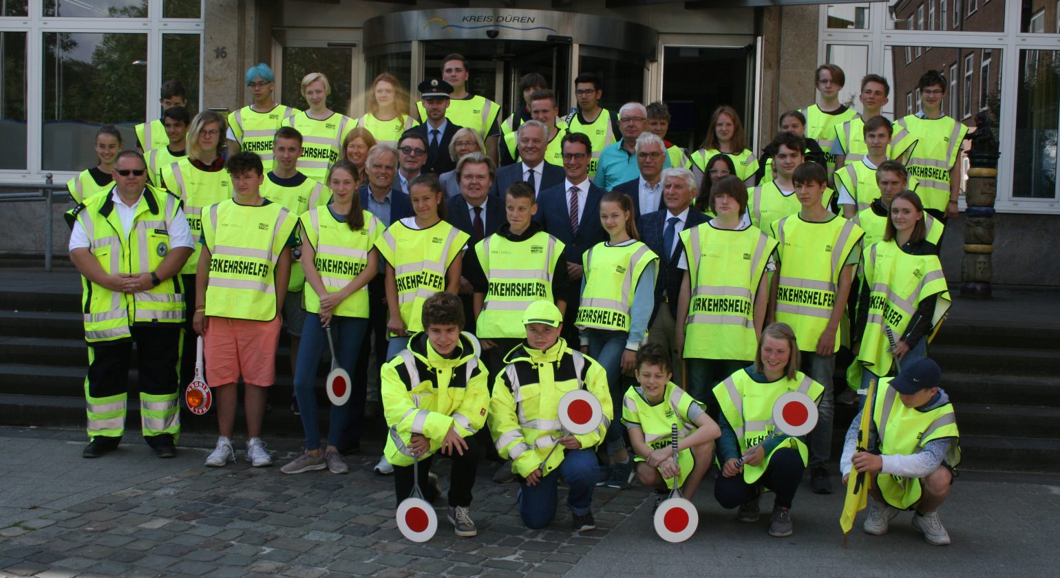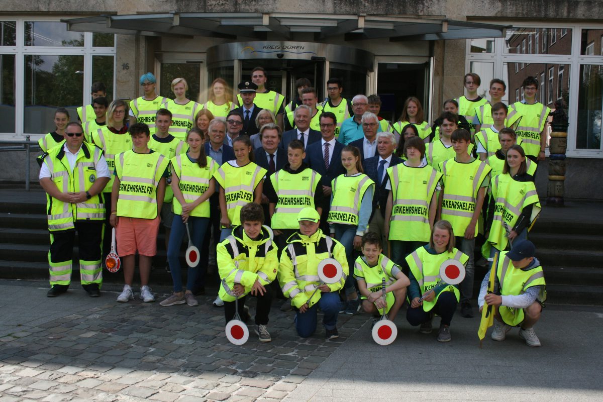 In NRW sicherten 2018 3.729 Verkehrshelfer die Straßen im Umfeld von Schulen. Neben 2.044 Erwachsenen waren 1.685 jugendliche Schülerlotsinnen und Schülerlotsen im Einsatz. Die Europaschule Langerwehe ist momentan die einzige Schule im Kreis Düren, welche Schülerlotsen stellt; an anderen Schulen und Schulwegen des Kreises verrichten Erwachsene als Verkehrshelfer ihren ehrenamtlichen Dienst.