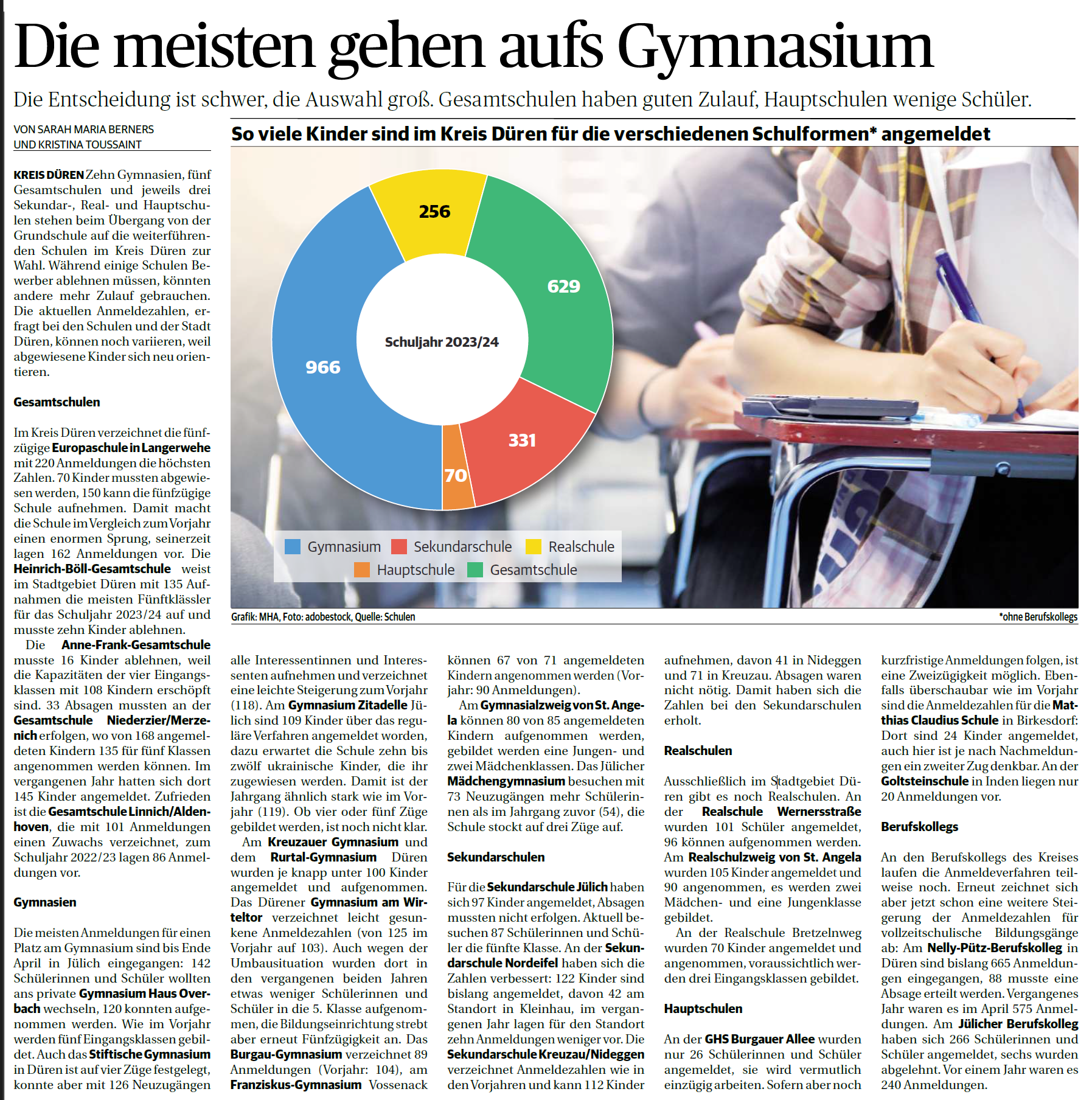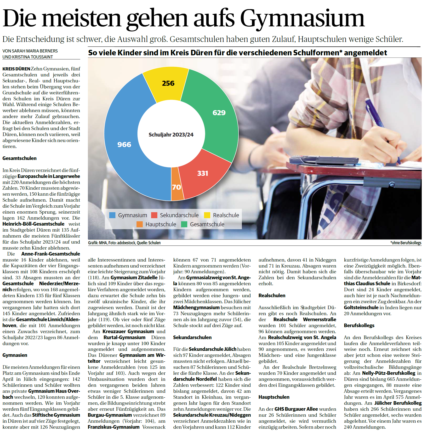Anmeldezahlen Schulen im Kreis Düren (04.05.2023)