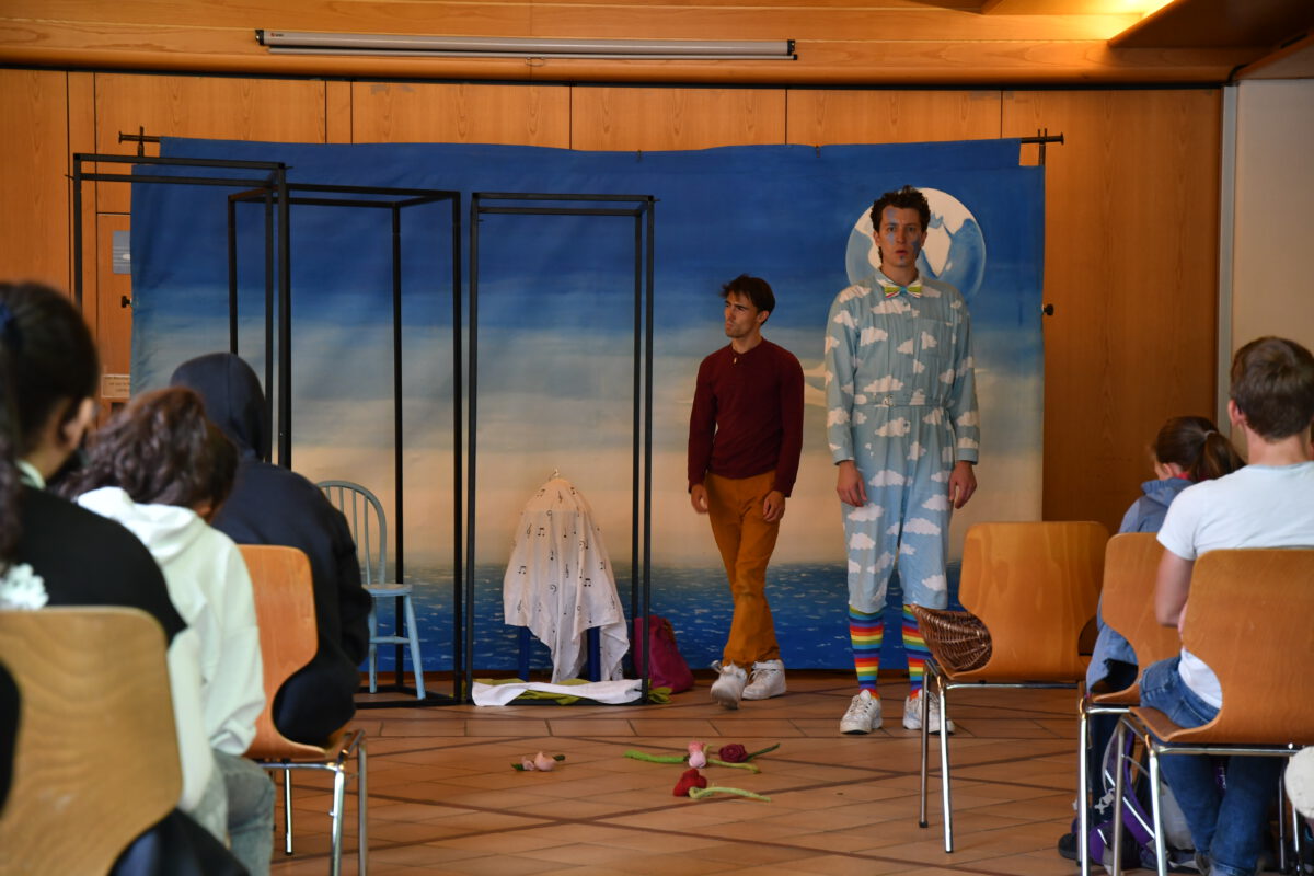 In der letzten Ferienwoche machte das englische White Horse Theatre wieder einmal Station an der Europaschule Langerwehe und zeigte zwei Stücke: eines für die E-Kurse der Jahrgänge 8 und 9 mit dem Titel „Two Gentlemen“ und ein weiteres für die Jahrgänge 6 bis 8 (G-Kurs), nämlich „The Empty Chair“.